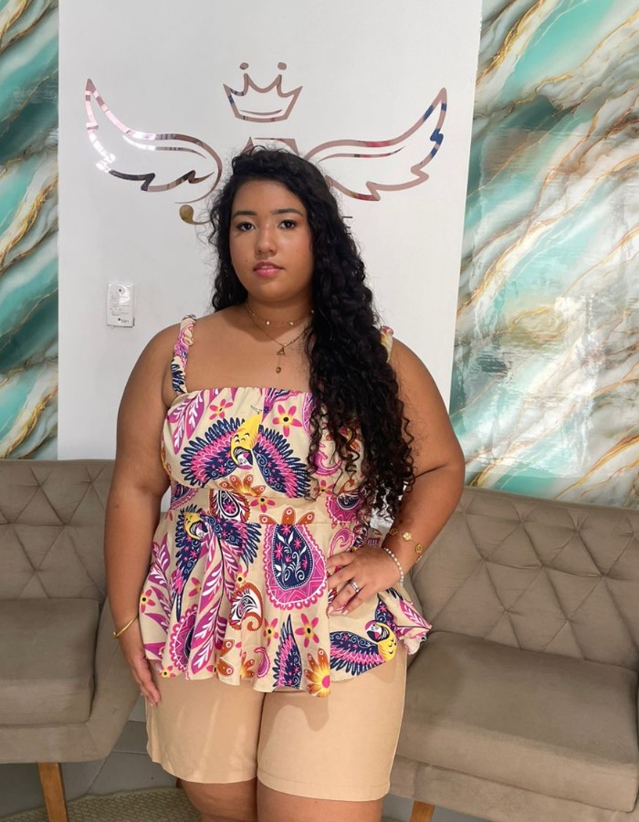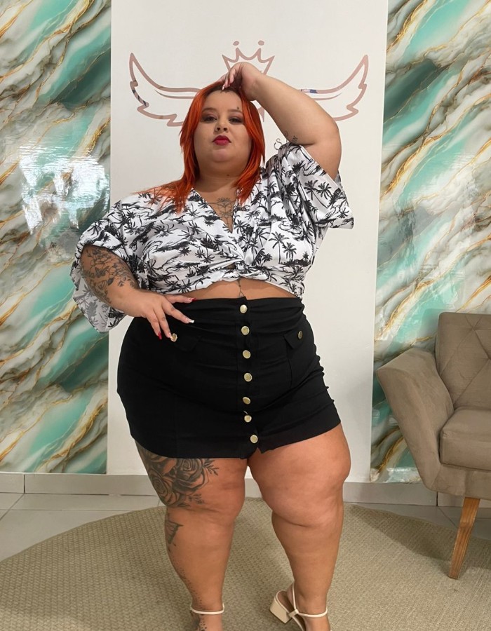 Croped estampado em Crepe de Seda
