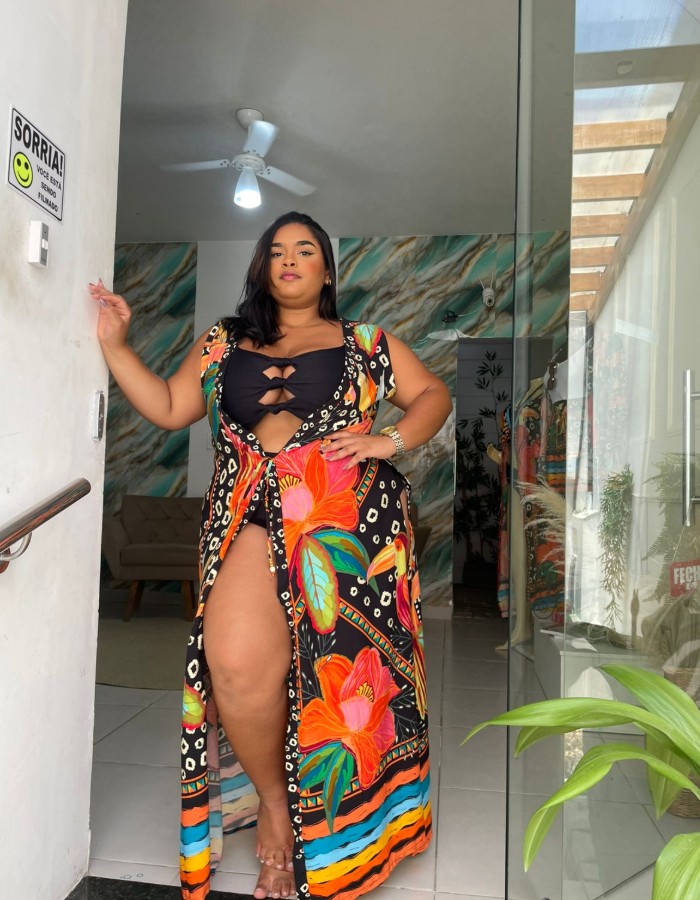 Macaquinho estampado em tecido Crepe de Seda
